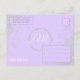 Cette carte postale de mariage glamour, chic et élégante avec des paillettes argentées brillantes sur fond lavande violet pastel est parfaite pour l'événement classe. Ce design classique et sophistiqué est idéal pour le couple qui se marie tendance et stylé. Personnalisez avec votre propre message sur le devant ainsi qu'un monogramme personnalisé au dos. Conception d'impression photo pour tous.