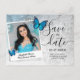 Carte Postale Faire-part Papillon Bleu Quinceanera Photo Enregistrez la dat