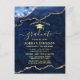 Carte postale Faire-part Blue Graduation Party de la Marine Dorée moderne.