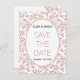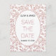 motif de parties scintillant en or rose avec feuilles et cadre blanc ovale avec contour ornent cette carte postale Enregistrer la date. Choisissez-le pour mettre votre mariage.