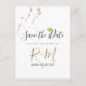 Un design design design et moderne Save-the-Date (style de police manuscrit), avec la chute de la parties scintillant faux or sur arrière - plan blanc, clair et propre (couleur personnalisée)... et à l'arrière de cette carte postale de mariage élégante, lignes de texte personnalisées...