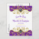 Le design présente un design à la parties scintillant violette avec de l'or ornemental et des ornements en pierres précieuses. Associez-vous à notre collection mariage correspondante de produits en papier et de faveurs.