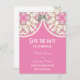 Assez élégant papier parchemin moderne de couleur rose pastel pâle et blanc avec découpes en dentelle et motif filigrané, inspiré de vieux motifs damassés antiques avec ruban argenté et fond personnalisable - choisissez facilement votre couleur parmi une gamme de couleurs personnalisées pour changer totalement l'aspect du design et l'adapter à votre collection de papeterie de mariage et autres essentiels de la mariée. Cette invitation "save the date" de mariage élégante et sophistiquée, facilement personnalisable avec les noms des mariés sur les modèles de texte pour créer votre propre "save the date" minimaliste et féminin pour votre mariage romantique, vos événements et célébrations. Visitez la BOUTIQUE_MARIAGES PERSONNALISÉS pour des ensembles de mariage coordonnés. PERSONNALISEZ pour ajuster le texte et la police.