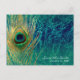 Carte Postale Faire-part Peacock Feather Blue Turquoise Gold Glam Enregistr