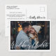 Mise à jour élégante et moderne de mariage avec une photo et votre message au verso. Parfait pour informer vos proches que vous réduisez la liste des invités.