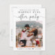 Élégant enregistrez la carte postale date pour une réception ou une fête après votre évènement ou petit mariage. Le devant présente votre photo de jour de mariage et "Save The Date For Our Happily Ever After Party" dans un mélange de typographie simple et un joli script avec des swashes. Ajoutez vos prénoms et la date de réception. À l'envers, vous pouvez personnaliser votre faire-part de manière plus détaillée, ajouter votre adresse de site Web mariage pour créer un code QR pour que les invités puissent scanner pour plus d'informations et ajouter vos noms dans un script de type signature.