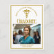Cette carte postale d'annonce de remise des diplômes personnalisée en or chic pour l'école d'infirmières ou de médecine présente une typographie moderne élégante pour un diplômé de la promotion 2025 au-dessus de votre photo d'infirmière ou de médecin. Personnalisez avec votre année de remise des diplômes sous le symbole du caducée médical et une photographie personnalisée du diplômé.