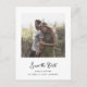 Ces cartes de sauvegarde de mariage en noir et blanc, simples et élégantes, présentent une typographie de style vintage fantaisiste avec votre photo et un code QR scannable pour le site web de votre mariage ou les détails.