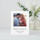 Elégant Mariage moderne Enregistrer la faire-part Date carte postale avec une typographie et conception photo simple. Avec un lettrage personnalisable, vous pouvez ajouter vos noms et informations de mariage. Vous ajoutez également votre propre photo pour ajouter une touche de personnalisation. Idéal pour planifier votre journée spéciale.
