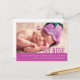 Une carte postale moderne simple mauve mauve rose bébé faire-part. Personnalisez avec les détails de votre petite fille et une photo spéciale de votre nouvelle fille. Une excellente façon d'annoncer votre nouvelle arrivée à la famille et aux amis. Conçu par www.mylittleeden.com