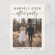 Faire-part de mariage ou annonce de mariage en toute intimité avec une invitation à la réception, dans une gamme de crème légère moderne. Le recto présente votre photo du jour du mariage et "Happily Ever After Party" dans un mélange de typographie simple et d'un script élégant avec des fioritures. Sous votre photo, vous pouvez ajouter vos prénoms et la date du mariage. Au verso, vous pouvez personnaliser votre message et votre invitation avec plus de détails, saisir l'adresse URL de votre site web de mariage pour créer un code QR que vos invités peuvent scanner pour obtenir plus d'informations et répondre en ligne, et ajouter vos noms dans un script ressemblant à une signature.