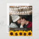 Mariage rustique enregistrez les cartes de date avec une photo de vous et de votre partenaire, un arrière - plan de tonneau de chêne de campagne, des lumières à cordes scintillantes, des tournesols jaunes élégants, votre monogramme et le libellé mariage moderne. Cliquez sur le bouton "Customiser" pour personnaliser davantage ce modèle. Vous pourrez modifier tout le texte, y compris le style, les couleurs et les tailles. Vous trouverez les articles correspondants plus loin dans la page, si toutefois vous ne trouvez pas ce que vous cherchez, s'il vous plaît contactez-moi.
