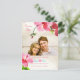 PixDezines hibiscus rose et rouge avec papier faux-vieilli amovible en tant que cartes postales florales de sauvegarde de la date avec votre photo de fiançailles. Polices DIY et couleur des polices.