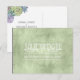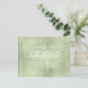 Des polices uniques, des succulentes aquarelles colorées et des fonds scintillants dans un vert printanier doux sont les points forts de ces produits de mariage à assortir. Cette carte postale de mariage "Save the Date" fournit un modèle pour ajouter vos propres noms, date de mariage et message dans un format facile pour le retour par courrier. Un motif brillant et texturé, dans des tons clairs et foncés de vert printanier, ajoute un fond contrasté au verso. Recherchez l'ID515 pour voir tous les produits correspondants de cet ensemble.
