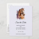 Enregistrez la carte postale de date avec l'image d'une tête de cheval brun portant un portrait en cuir halter. Beau animal majestueux.