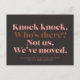 Annoncez votre nouvel emplacement avec une carte postale moderne et amusante. Personnalisez avec votre nouvelle adresse et votre nouveau nom à l'avant. Espace inverse pour un message personnalisé. Autres couleurs disponibles.
