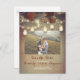 Feuilles d'érable bordeaux, pots mason, guirlandes lumineuses et toile de jute rustique cartes de postales photo automne enregistrer la date