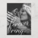 Annonce de fiançailles moderne en noir et blanc. La conception comprend une seule photo, une typographie script 'pour toujours a une belle sonorité' sur le devant et votre message au dos. Parfait pour annoncer votre grande nouvelle.