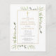 Doté de délicats feuilles d'aquarelle et d'un élégant crucifix en or, ce chic neutre de genre Première Sainte Communion, sauf la date, l'invitation peut être personnalisée avec vos informations spéciales, avec un arrière - plan en or au verso. Conçu par Thisisnotme©