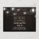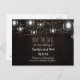 Carte postale avec arrière - plan en bois rustique avec de belles ampoules suspendues lui donnant un aspect champêtre. Parfait pour votre mariage campagnard extérieur. Personnalisez-le avec vos noms et avez le meilleur et le plus inoubliable mariage à partir de enregistrer les cartes de date parfaites pour votre famille et vos amis.