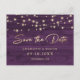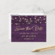 Carte Postale Faire-part Purple Rustic Bois Éclairages Enregistrer La Date