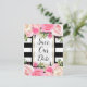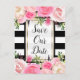 Carte Postale Faire-part Rayures noires et blanches Fleurs roses Enregistre