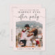 Élégant rose enregistrez la carte postale date pour une réception ou une fête après votre évènement ou petit mariage. Le devant présente votre photo de jour de mariage et "Save The Date For Our Happily Ever After Party" en typographie simple et un script chic. Ajoutez vos prénoms et la date de réception. Au contraire, personnalisez votre faire-part, entrez l'adresse de votre site Web mariage pour créer un code QR pour que les invités puissent scanner pour plus d'informations et ajouter vos noms dans un script de type signature.