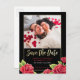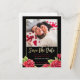 Créez vos propres cartes postales "Red Roses Black & Gold Parties scintillant Save the Date Photo".