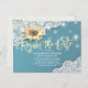 Modèles de cartes postales Mariages modernes - Fleurs de soleil élégantes, cadre en dentelle Vintage et lumières à cordes chic sur Arrière - plan bleu Turquoise/ Turquoise/ Tiffany. Remise / Carte Faire-part / Séjour à la maison & Séjour en toute sécurité / Changement de plan / Changement de date / Supprimer la date / Reportée / Nous le faisons toujours, nous continuerons / Nouvelle date / Retarder la date / L'amour est patient / Reprogrammé / Nouveaux plans / Réinitialiser la date / Enregistrer la nouvelle date / Retarder notre date / Les choses se passent Nos cartes de report sont une façon rapide et facile de faire connaître les clients du changement de plans. Rapide et facile à personnaliser en ligne.