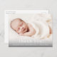 Une annonce de naissance douce et photo de remerciement avec un merci moderne et une photo horizontale pleine page. Le dos est une carte postale avec un message personnel de la famille.