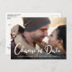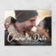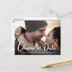 Même si les circonstances vous obligent à reporter la date de votre mariage, montrez à vos invités que votre amour continue avec votre photo de fiançailles préférée sur cette carte postale d'annonce de changement de date de mariage. « Changement de date » est écrit en grand script blanc contemporain au bas de votre photo, et en dessous, vous pouvez personnaliser vos noms et indiquer si le mariage a été reporté, si le lieu a été modifié, etc. Au verso, vous pouvez personnaliser davantage votre message de manière plus détaillée et ajouter votre nouvelle date et lieu de mariage.