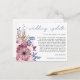 Lorsque les circonstances signifient malheureusement que vous devez reporter votre mariage, cette carte postale pratique vous permettra d'informer vos invités. Wedding Update est écrit dans un élégant script bleu poussiéreux en haut et le reste du texte au recto et au verso peut être facilement personnalisé. Des fleurs modernes roses et lilas et du feuillage bleu sont alignés à gauche des mots alignés à droite, et un motif floral coordonné est également au verso.