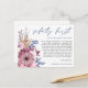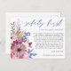 Lorsque les circonstances signifient malheureusement que vous devez reporter votre mariage, cette carte postale pratique vous permettra d'informer vos invités. Sécurité d'abord est écrit dans une élégante écriture en bleu poussiéreux en haut et le reste du texte au recto et au verso que vous pouvez facilement personnaliser. Des florales roses et lilas modernes et du feuillage bleu sont sur le côté gauche et un motif floral coordonné est également au verso.