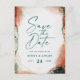Cartes de mariage "Save the Date" à l'aquarelle éthérée abstraite avec du vert sarcelle foncé et du cuivre. Ce design de mariage moderne est magnifiquement peint à la main avec des couleurs riches qui sont parfaites pour l'automne. Présenté dans la gamme de couleurs "Dark Teal Wedding Color Palette" comprenant : sarcelle foncée, vert paon, rouille cuivrée, or poussiéreux, bosquet d'amandes et beige bisque. Avec des détails en feuille de métal faux et une superbe police de caractères à queue, la collection de mariage à l'aquarelle éthérée est sûre de rendre votre mariage mémorable et beau !