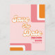 Carte Postale Faire-part Rétro années 70 rose orangé groovy save the date