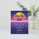 Carte Postale Faire-part Rétro Néon Violet Synthwave Coucher de Soleil Rock
