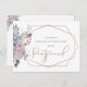 Annoncez le report de votre mariage avec ces cartes postales avec un magnifique bouquet floral aquarelle de fleurs sauvages bohèmes dans des tons de violet, pourpre, lilas, bleu poussiéreux, pêche, rose et verts et accentué d'un motif géométrique en rose doré ou en terre cuite et un titre en typographie manuscrite et un texte gris charbon. Le verso offre une zone entièrement modifiable pour personnaliser votre message. Contactez le designer via Zazzle Chat ou makeitaboutyoustore@gmail.com si vous souhaitez que ce design soit modifié, sur un autre produit ou si vous souhaitez des articles coordonnés.