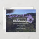 Le faire-part de camping familial "Save The Date" présente une photo arrière - plan du jour au fond d'une fleur de lin bleu devant un champ vert. Personnalisez les informations du modèle pour l'avant et l'arrière, supprimez le texte et/ou cliquez sur customiser pour sélectionner la couleur, la taille et le style de police que vous préférez.