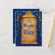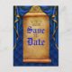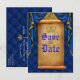 Carte Postale Faire-part Rideaux de mariage à volutes bleu royal et or
