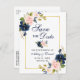 Carte Postale Faire-part Rose Blush Blue Floral Élégant Enregistrer la date