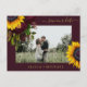 Gros tournesols d'or jaune et rose bordeaux rouge faux or chic calligraphie main écriture et cadre de style lettré faisant une photo rustique moderne enregistrer la date rouge foncé carte postale mariage bordeaux. ++++++++++ Facile à personnaliser avec votre photo, vos noms et votre texte des deux côtés ! +++++++++++ Convient aux mariages à thème floraux modernes été ou automne jardin jardin rustique, bohème ou ferme. +++++++++++ Les couleurs sont changeables. Si vous avez besoin de le customiser dans une couleur spécifique, veuillez contacter le concepteur via le bouton MESSAGE ci-dessous.