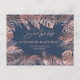 Carte Postale Faire-part Rose gold en feuille de tropicale bleu marine roma