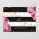 Roses roses sur fond noir et blanc avec confettis à effet pailleté or carte postale moderne de sauvegarde de la date florale.