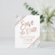 typo Rose Gold sur bloc de couleur marbre blanc personnalisable rose gold et faux rayures géométriques rose gold chic save the date mariage , parfait pour un mariage élégant et stylé,