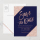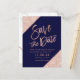 Carte Postale Faire-part Rose gold pailleté écriture bleu marine save the d