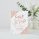 Carte Postale Faire-part Rose gold pailleté écriture marbrée save the date