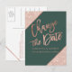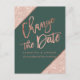 Carte Postale Faire-part Rose gold pailleté écriture verte changer la date