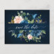Carte Postale Faire-part Rose Rose Bohème Rose Écarlate Bleu Marine Enregis