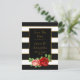 Carte Postale Faire-part Rose rouge, noir, blanc et rayure dorée -