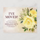 Elégante aquarelle jaune roses/floral et feuillage "I've move." changement d'adresse/carte postale faire-part mobile. Personnalisez sur le devant avec vos nouvelles informations d'adresse.